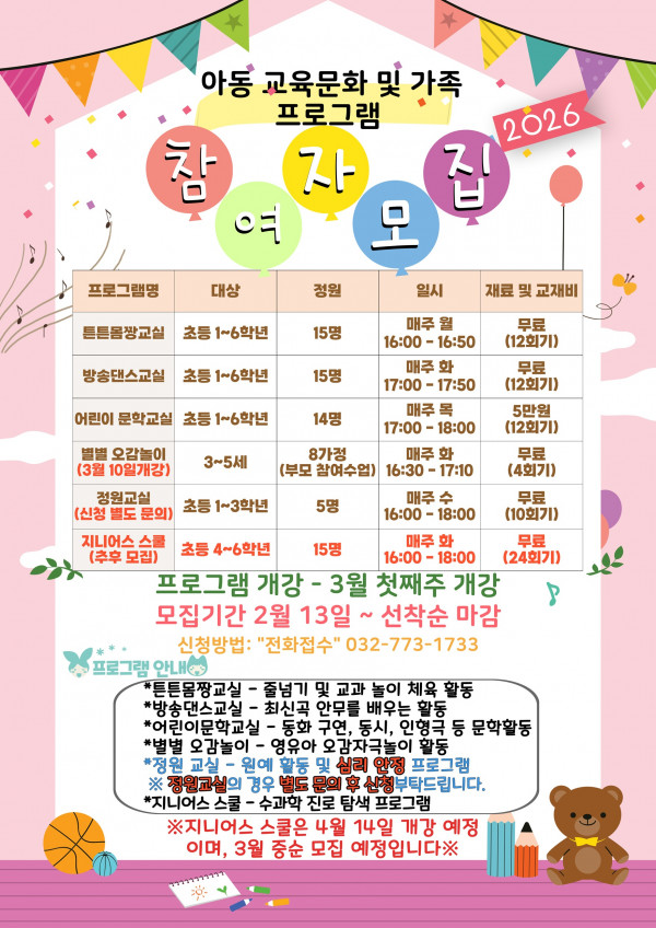 공지 <모집중>2026년 상반기 아동교육문화 프로그램 모집 안내